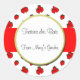 A custom canning or soap label with script letters and a pattern of wild strawberries behind a simple gold medallion and a faux red ribbon.