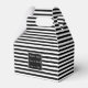 This striped favour box is black and white. Personalise the favour box with your desired text, such as the bride and groom's name or wedding date.