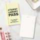 This modern student library pass badge features a lined paper background design, providing a clean look for any school. Customise it with the teacher's name, classroom number, and grade level. Ideal for schools and educators, this durable pass ensures students have a clear and recognisable ID when leaving the classroom.