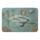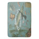 Stylish vintage style bath mat printed with a 19th century French dictionary Oceanography illustration. It shows a selection of fish, algae, corals and other marine creatures from the deep seas. Perfect for a under-the-sea beach house bathroom decor with a dark academia touch. Personalised with your family name, location and date of establishment. The text is fully editable.