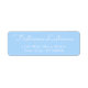 Chic simple address return label with a pretty, trendy and modern white script font on a trendy pastel Cornflower blue coloured background to embellish your mail and envelopes with. Customise or personalise with the name and address of your choice.