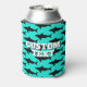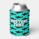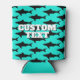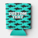 Custom summer can cooler with shark silhouettes. Cool Birthday gift idea for friends, family, boat captain, sailor, skipper, fisher, scuba diver, swimmer, diving buddy and others. Turquoise blue sea colour or customise it. Add your own personalised name or funny quote. Double sided print. Great for home, boating, yachting, sailing, fishing, nautical party and more.