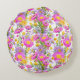 Pretty cottage garden floral patterned custom round pillow with retro-inspired paper daisies and billy buttons on a white background. These Australian cottage garden flowers are just so romantic and pretty, perfect for gifts or bedroom or living room decor, illustrated by Jo Story of Sketchbook Designs. This pillow would make the perfect keepsake for Christmas, mother's day, or birthdays or weddings.