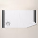 Three black stripes on white and custom sun moon image. Elegant modern towel set.