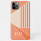 Contemporary dark, medium, light, and pastel summer orange coloured geometric stripes, lines, and triangle shapes mosaic pattern design. With room to customise or personalise with a monogram or initials of your choice. Beautiful, modern, and cool cover for the trend-savvy and art-loving hip trendsetter, artsy motif lover who wants to protect their phone from dust and dirt, wear and tear. This design is available in Apple iPhone 6, 7, 8, 10 or X, XR, XS, 11, 12, 13 Mini, 14, 15 Plus, and Pro Max cellphone cases. Show off your style, look fashionable trendy, and feel stylish with a unique design on a mobile device accessory of your choice.