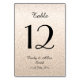 Personalised wedding table card with template text for a number, names and date; champagne brown gradient retro design with bokeh circles;