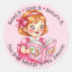 Custom Teacher Library Bookplate Girl Reading Book Classic Round Sticker