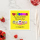 Vibrant yellow Teacher's Welcome to My Class paper napkins, showing a bright colourful WELCOME followed by wording which reads (insert your name here)'S CLASS IS A HAPPY PLACE. This text is CUSTOMIZABLE so you can add your name and class or create your own text. There is also a group of smiling face icons. You can use these Welcome party napkins to welcome your new students back to school with a special welcome party. Matching party supplies and gifts are available. Other colours available, or you can change the background colour by clicking Edit This Design.