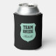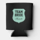 Personalised Team Bride can coolers for wedding party. Create your own cosy beverage holders for brides crew / entourage. Make them for bride, bridesmaids, maid of honour, flower girl, mother of the bride etc. Cute mint green and black emblem design with stylish typography. Personalizable wedding favour with name, funny quote, monogram etc. Marriage humour for wedding day, bridal shower, engagement or fun bachelorette party. Also available for team groom and groomsmen.