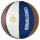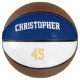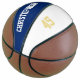 Create your own custom, personalised, white and faux gold elegant stylish typography / script / text / name on white and dark navy blue background, regulation size, hand stitched basketball. Simply enter the player / team / club / school / college / event / tournament name, and player jersey number, to customise. While you add / design, you'll be able to see a preview of your creation, throughout. Sure to become a treasured keepsake. Makes a great custom, personalised gift for birthday, fathers day, graduation, christmas, holidays, and more, for your loved ones, dad, grandpa, brother, son, nephew, godson, school / college / university / sports club team, player, coach, uncle, husband, kids, boy, girl, friends and family.
