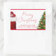 Custom Merry Christmas Happy New Year Handwritten Script Text Elegant Modern Template Best Pine Tree Red, Green And White Rectangle Stickers.
