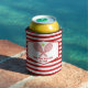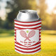 This classy modern country club can cooler features tennis rackets and a ball above your tennis team name and established date. Red and white striped can coolers for your tennis players and country club members.