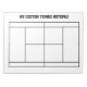 Custom tennis lessons notepad with court layout for player and coach. Paper tear off memo note pad with tennis court dimensions design. Custom office and school supplies for training. Large size for making notes on tactics, improving game strategy, techniques, play movement in singles and doubles, serve direction, court positions etc. Personalised tennis club materials for sports coach, teacher, trainer, mum, dad, friends, school kids, team, league etc. Useful Birthday gift idea for teaching kids and adults. Customisable background colour or leave white.