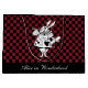 This eye catching customisable gift bag features an Alice in Wonderland theme with a classic black and red chequerboard pattern and the White Rabbit. In the centre there is a vintage image of the White Rabbit from Carroll's famous work. The rabbit wears a royal squire top bedecked in hearts and carries a trumpet, scroll, and his pocket watch. The customisable text says "Alice in Wonderland" in white cursive print. Hit the Personalise button to change or delete the text, or the Customise button to edit the font or font colour.Makes a great gift, decoration, or party item for lovers of checked and chequerboard patterns, Alice in Wonderland, the White Rabbit, and quirky, elegant designs. This design is also available on tissue paper, stickers, pillows, and other items.