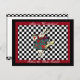 This customisable text postcard has an Alice in Wonderland theme. It features the White Rabbit and a classic black & white chequerboard pattern with a deep red and black border. The White Rabbit image is the original illustration from Lewis Carroll's famous work. The rabbit wears a royal squire top bedecked in hearts and carries a trumpet, scroll, and his pocket watch. There is a spot to customise the card with your own text at the top and bottom. The default text says Alice in Wonderland and Follow the White Rabbit in white cursive print. Just hit the Personalise button to edit or delete the text, or the Customise button to change the font, size, text colour, background colour, or reverse side colour if you wish. Makes a great gift, decoration, or party item for lovers of checked and chequerboard patterns, Alice in Wonderland, the White Rabbit, and classic literature based designs. This design is also available on gift bags, tissue paper, plates, napkins, stickers, and can be transferred to any item in the Zazzle marketplace.