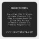 A personalised black business package ingredient label sticker design. Perfect for products that require a listing of ingredients.