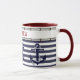 Beautiful contemporary ship anchor, on a classic and chic navy blue and white stripes pattern. Set off with white nautical rope, with room to personalise or customise with name, initials or monogram of your choice, or any kind of nautical expression like "Ship Ahoy", "Sail Away", "Anchors Aweigh", or "Bon Voyage". Created for the captain, lover of the ocean and sea sailing, vacation and summer.