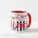 A delightful Coronation celebration souvenir mug with Grenadier Guardsmen, bunting and crown which text which is easy to remove or customize as you wish.