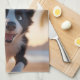 Custom text, cute black and white dog tea towel