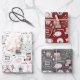 Cosy Christmas Pattern Wrapping Paper with Custom Name and Greeting on a White, Red, Grey Background (EDITABLE BACKGROUND COLOR). For more advanced customisation of this design, please click the "customise further" link.