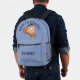 Custom text cute funny cartoon Back to school blu Printed Backpack