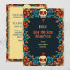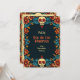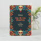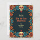 The “Eternal Blossoms Tribute Card” is a Dia de Muertos flat greeting card featuring a vibrant border with floral patterns and skull motifs in colours such as blue, orange, and red on a dark background. The front of the card displays the text “Feliz Dia de Los Muertos” in a large, stylised font, followed by “from [custom name],” where the sender’s name can be personalised. The back of the card offers space for a custom message and continues the same decorative border and background as the front for visual consistency.