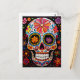 🌟 Celebrate the vibrant tradition of Día de Muertos with our captivating postcard featuring a stunningly detailed and colourful sugar skull, elegantly set against a deep black background. 🌟