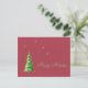 "Happy Holidays" postcard with red paper background featuring a decorated fir tree and snowflakes.