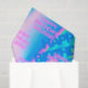 Custom Name or Text Holographic Iridescent Y2K Modern Birthday Party tissue paper featuring your personalised typography on abstract rainbow background in bright neon colours, very eyecatching design.