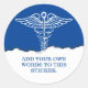 Custom Text Medical Caduceus Blue Classic Round Sticker