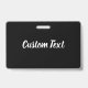 This black badge has display text in a white script. The text can be edited to show a custom message.