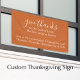 Add your custom text at the bottom of this Bible scripture orange banner. These stylish burnt orange Thanksgiving banner would work well for a church Thanksgiving meal sign. "Give thanks to the Lord of lords" is a Christian bible verse. This thanksgiving scripture is written in modern custom script. The text at the bottom can be personalized for your purposes. This outdoor banner will invite your community to your Thanksgiving event. "Give thanks to the Lord of Lords: His love endures forever." is a Thanksgiving Christian Bible verse from Psalms 136:3. The elegant trendy white script is on a solid burnt orange background. All the script can be edited and customized. It's a great sign for a religious Thanksgiving dinner, church or charity or mission Thanksgiving meal or event.