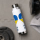 The bottle looks even better in real life. The ice cubes I put in lasts all day! I have my bottle with me all the time. It's summer and having something cold to drink feels amazing. With this bottle I always have something super cold. I have only tried the hot drink once and it lasted a long time as well. The color blue is a navy blue and the white printed on it is vibrant. It printed perfectly. I love my personalized smile water bottle.