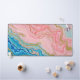 Custom Text Pink and Blue Marble with Gold Veins Desk Mat
