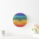 The clock did not take as long to arrive as I thought it might and was extremely well packaged. I didn't do the measurements so I didn't realize it is a little smaller than the average clock but that does not matter (just make sure you check if that's important to you).It is really nifty! It seems very solid and well made not flimsy at all. It has been going well and has kept good time in its few weeks on my wall. Nice product. Gets noticed too! Nicer in real life than the picture but true to the picture