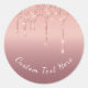 Custom Text Rose Gold Blush Glitter Sparkle Drips Classic Round Sticker