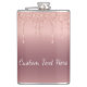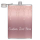 Custom Text Rose Gold Blush Glitter Sparkle Drips Hip Flask
