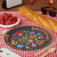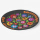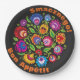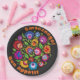 Unique folklore composition with beautiful cut-out style flowers inspired by folk art Wycinanki from Lowicz customisable Paper Plate. Cute as a gift for folk loving person.