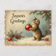 Share the happiness of the season with this heartwarming postcard featuring a curious tabby kitten cradling a red ornament in a snowy woodland scene. With evergreen branches, red berries, and a vintage look, it captures the cozy charm of winter wonder. The front reads “Season’s Greetings,” and the reverse includes a space for your own verse or message — perfect for sharing joy, memories, or a touch of whimsy. This design is part of the Paws Charming collection Paws, Wings, and Winter Things, which celebrates the magic of animals and the holidays. A portion of proceeds supports animal charities, making every card a gift of love.