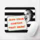 What's on your mind? Add your statement on this custom mouse pad! Digitally altered photo of young man shouting your text on a white rectangular label. Background is black stripes on any colour - you can recolor the space between the stripes by adjusting the products basic background colour!