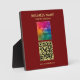Upload Your Business Company Logo QR Code Here Add Text Elegant Modern Burgundy Red Custom Template 5.25 x 5.25 Vertical Design Square Tabletop Plaque with Easel.