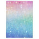 Custom and personalise this design. To add your own custom text, click on the "abc Personalise This Template" that is on the right hand side. If you're a rainbow, glitter, unicorn type of chic, than this design is for you. At the top is a realistic rainbow made up of 7 colours. The colours are so bright and yet you can see through them, to the ombre faux glitter pattern background. Below the stunning rainbow, is where you can add your own text or choose to have no text and under it, the white unicorn. This adorable unicorn is all white with colourful rainbow hair and horn. All white except light pink blush on her cheek and a blue eye that seems to be looking at you. Her unicorn horn and mane and tail are done in bright, cheerful fun colours of gold yellow, purple, blue, dark pink, pastel pink, blue green, soft pastel green pink and purple shades. She also has dark pink hoofs. She is standing on puffy white clouds. The faux glitter pattern for the background is an ombre gradient of pink, yellow, blue green, and dark blue and has faux glitter and sequins. No actual glitter or sequins are used, it is in the artwork and is a picture only. You'll see faux glitter that seems to sparkle and shine with a metallic shimmer of sequins that are scattered within pattern. Over all design gives a girly girl look with lots of sweet whimsy magic and fantasy mixed in.