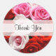 A set of round thank you stickers featuring roses in red, pink and white. Perfect for rose lovers. The words "thank you" are customisable