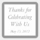 Add the finishing touch to your favours and gifts or thank you card envelopes with these personalised square stickers. These custom stickers feature medium grey text on a white background and a grey border. The default text is "Thanks for Celebrating With Us", but you can customise the text from the product order page. These custom envelope seals or gift labels coordinate with the Medium Grey envelopes, invitations and other products in our store.