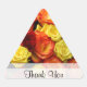 A set of triangle rose "thank you" stickers featuring roses in red, orange, and yellow. Perfect for rose lovers. The words "Thank You" are customisable!