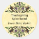 Custom Thanksgiving food, baking or canning stickers with retro letters and beautiful vintage art of a cornucopia, a symbol of a bountiful harvest, with fruits and vegetables on a rustic faux parchment background.