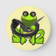 A bright green frog and a friendly snake sharing a hug. A cute and funny illustration of an unlikely friendship between predator and prey.