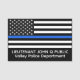 The Thin Blue Line is a symbol used by law enforcement.. Personalise with your name and rank.