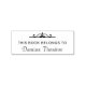 This traditional book stamp features a classy, timeless design. A decorative element sits above text that reads "This book belongs to", with the name written in italicised text below.