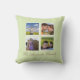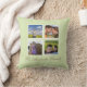 The fun and decorative photo throw pillow design, by red_dress, features a photo collage - to showcase your favourite photos - on a soft green background and a family name.